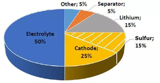 Fig.1 Weight distribution of components in lithium sulfur batteries