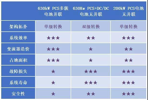 儲(chǔ)能系統(tǒng)在進(jìn)行了上述架構(gòu)優(yōu)化之后,在與偏重參數(shù)、并網(wǎng)、質(zhì)保等的“頂配”方案和增加大量DC/DC轉(zhuǎn)換器的“新技術(shù)”方案相比,在系統(tǒng)效率、變流器造價(jià)、占地面積、故障損失、系統(tǒng)壽命和安全性,性?xún)r(jià)比顯然要更高一些。