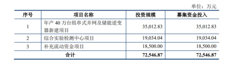 近日,寧波錦浪新能源科技股份有限公司(以下簡(jiǎn)稱“錦浪科技”)發(fā)布2020 年度非公開(kāi)發(fā)行股票預(yù)案。根據(jù)公告,通過(guò)本次非公開(kāi)發(fā)行股票募集資金總額不超過(guò)72,546.87萬(wàn)元,其中年產(chǎn)40萬(wàn)臺(tái)組串式并網(wǎng)及儲(chǔ)能逆變器新建項(xiàng)目投資規(guī)模35,012.83萬(wàn)元,綜合實(shí)驗(yàn)檢測(cè)中心項(xiàng)目投資規(guī)模19,034.04萬(wàn)元,補(bǔ)充流動(dòng)資金項(xiàng)目投資規(guī)模18,500.00萬(wàn)元。