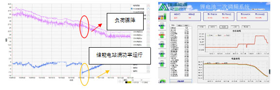 試運行期間,我們的鋰電池儲能系統(tǒng)受到了種種挑戰(zhàn)。由于特殊原因,發(fā)生跳閘導(dǎo)致電網(wǎng)負荷驟降,發(fā)電機轉(zhuǎn)速上升,時間短DEH來不及調(diào)節(jié)可能導(dǎo)致發(fā)電機組超速跳閘。而鋰電池儲能系統(tǒng)會在100ms內(nèi)滿功率投入,吸收電網(wǎng)上由于電爐跳閘而產(chǎn)生的多余負荷,然后緩慢降功率,留出足夠時間給DEH調(diào)節(jié)發(fā)電機轉(zhuǎn)速,保證電網(wǎng)平穩(wěn)運行。當電網(wǎng)黑啟動過程中,由于蒸汽壓力不夠,在帶載沖擊電壓器時,電網(wǎng)頻率降低到48Hz以下,汽輪機組接近失速,鋰電池儲能系統(tǒng)瞬間投入響應(yīng)的功率,補充電網(wǎng)負荷,保證頻率正常穩(wěn)定。