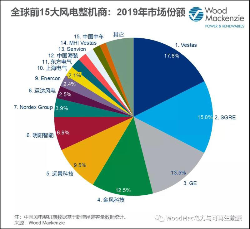 5月12日,Wood Mackenzie發(fā)布最新報(bào)告《2019年度全球風(fēng)機(jī)整機(jī)企業(yè)市場(chǎng)份額排名》。