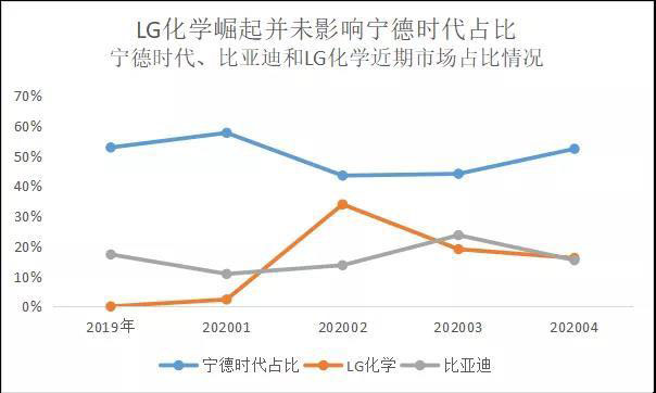 從市場(chǎng)占比可以看出,比亞迪和LG化學(xué)的市場(chǎng)占比比較接近,但與寧德時(shí)代相比仍有較大差距。在疫情復(fù)工后,已經(jīng)連續(xù)兩個(gè)月維持相對(duì)未定的環(huán)比增長(zhǎng),市場(chǎng)占有率再次過(guò)半。