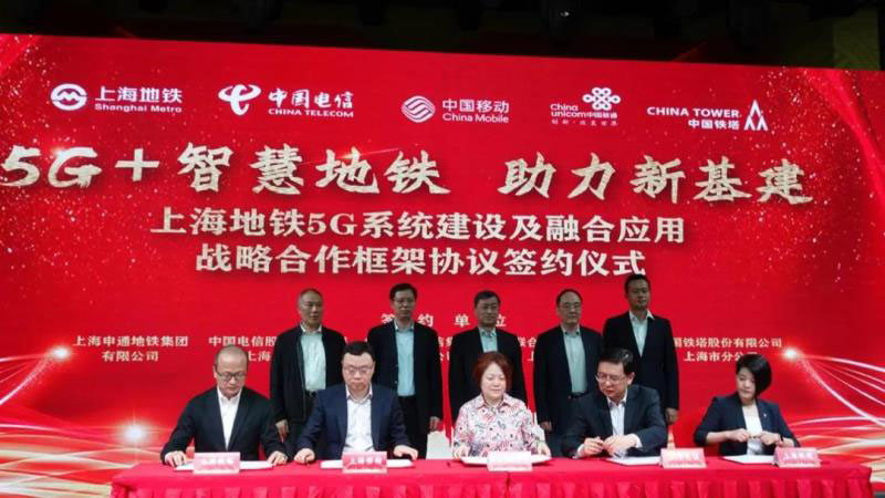 為貫徹落實(shí)《上海市推進(jìn)新型基礎(chǔ)設(shè)施建設(shè)行動(dòng)方案(2020—2022年)》,加快5G網(wǎng)絡(luò)建設(shè)與創(chuàng)新應(yīng)用,5月18日,申通地鐵集團(tuán)與上海電信、上海移動(dòng)、上海聯(lián)通、上海鐵塔簽署戰(zhàn)略合作框架協(xié)議并舉行開工儀式,在上海地鐵5G系統(tǒng)建設(shè)與融合應(yīng)用方面展開合作,力爭(zhēng)6個(gè)月建設(shè),確保今年進(jìn)博會(huì)前完成全市297個(gè)地下車站站廳、站臺(tái)的5G網(wǎng)絡(luò)覆蓋,并在車站乘客服務(wù)、運(yùn)營(yíng)安全管理、設(shè)施智能運(yùn)維等方面探索5G創(chuàng)新應(yīng)用。上海市經(jīng)信工作黨委書記陸曉春、市經(jīng)信委副主任張建明、市交通委副主任楊小溪、市國(guó)資委總經(jīng)濟(jì)師陳東、市通管局二級(jí)巡視員范志鋼,以及申通地鐵集團(tuán)、上海電信、上海移動(dòng)、上海聯(lián)通和上海鐵塔等公司領(lǐng)導(dǎo)出席簽約開工儀式。
