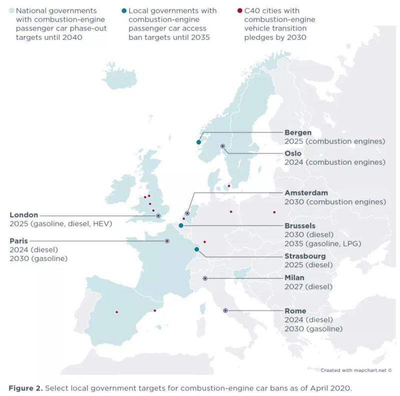 根據(jù)International Council on Clean Energy Transportation的匯總,以下歐洲國家設(shè)立了淘汰燃油車的時間表: