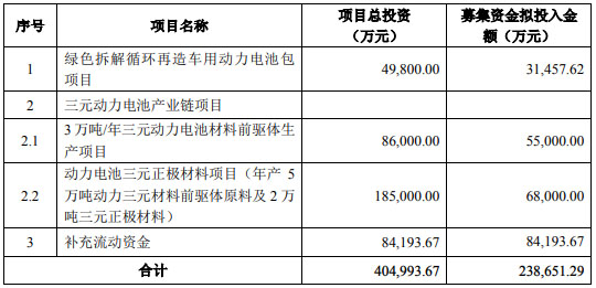 本次非公開發(fā)行募集資金投資方向緊密圍繞格林美主營(yíng)業(yè)務(wù)開展。綠色拆解循環(huán)再造車用動(dòng)力電池包項(xiàng)目、三元?jiǎng)恿﹄姵禺a(chǎn)業(yè)鏈項(xiàng)目的實(shí)施有利于進(jìn)一步落實(shí)公司的既有電池業(yè)務(wù)戰(zhàn)略規(guī)劃,最終實(shí)現(xiàn)公司長(zhǎng)期可持續(xù)發(fā)展。補(bǔ)充流動(dòng)資金可以滿足公司未來業(yè)務(wù)發(fā)展的現(xiàn)金流量。