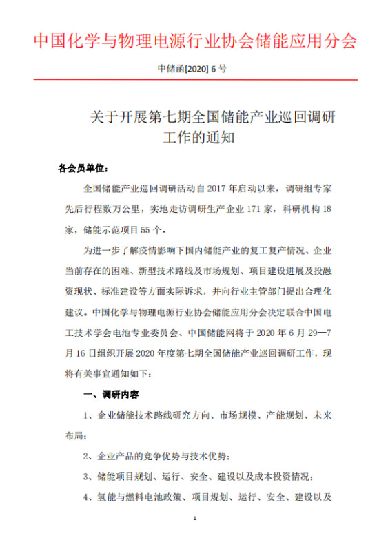 關于開展第七期全國儲能產(chǎn)業(yè)巡回調研工作的通知