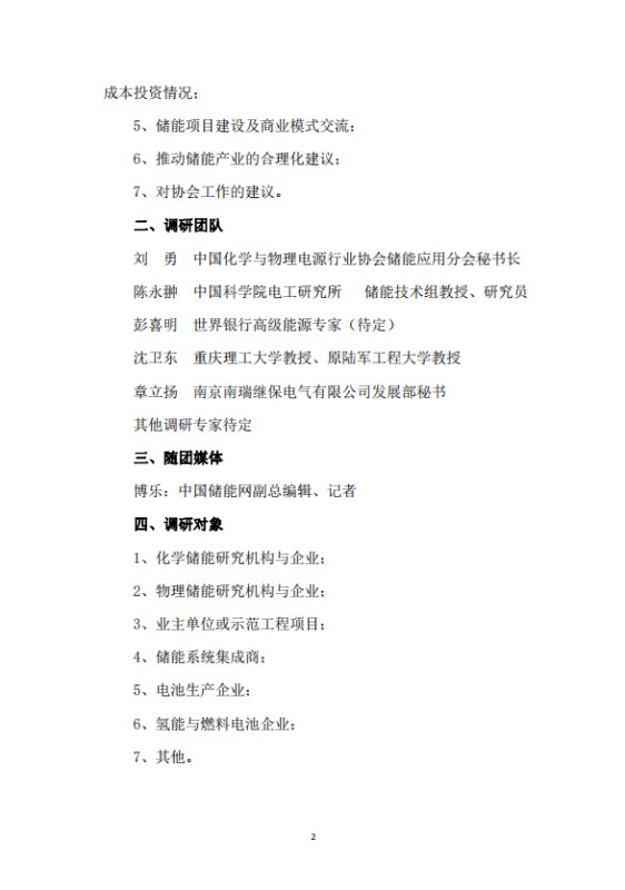 本次調研活動差旅費和住宿費由儲能應用分會自籌資金解決,被調研單位不承擔相關費用。