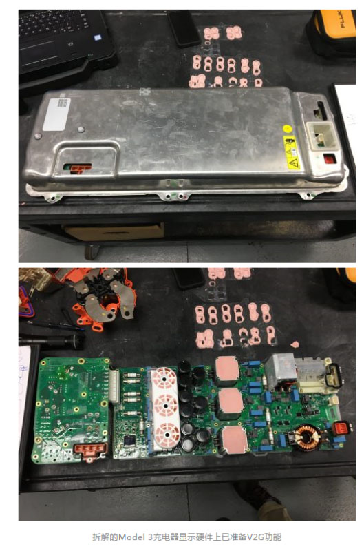 一位幫助特斯拉競爭對手對Model 3進(jìn)行拆解工作的電氣工程師Marco Gaxiola,對特斯拉的充電器進(jìn)行了反向工程,發(fā)現(xiàn)特斯拉充電器可以進(jìn)行雙向充電。他說Model 3充電器的設(shè)計是完全雙向的。這意味著特斯拉自帶的充電器已經(jīng)可以實現(xiàn)從AC轉(zhuǎn)DC和從DC到AC的逆變功能,也就是具備V2G功能。