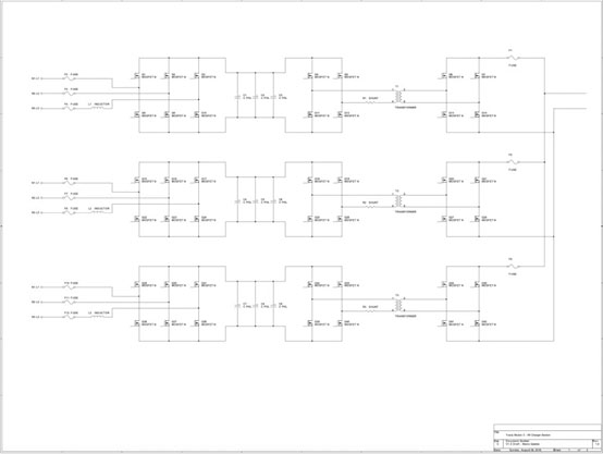 他還具體描述了特斯拉車載充電器的設(shè)計,雙向充電設(shè)計在Model 3充電器的同一塊PCB板上重復(fù)了3次。冗余設(shè)計是為了保證即使其中一個電路出現(xiàn)故障,也可以確保正常工作。此外,它是三相設(shè)計,因此可以在全球范圍內(nèi)使用。