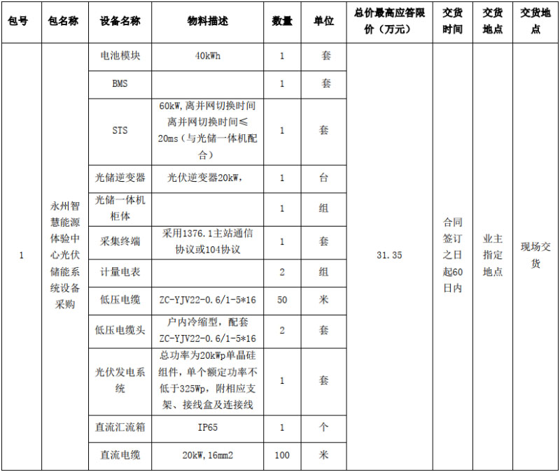 2.1 項(xiàng)目名稱:國(guó)網(wǎng)湖南綜合能源服務(wù)有限公司永州智慧能源體驗(yàn)中心光伏儲(chǔ)能系統(tǒng)設(shè)備采購(gòu)--公開競(jìng)爭(zhēng)性談判