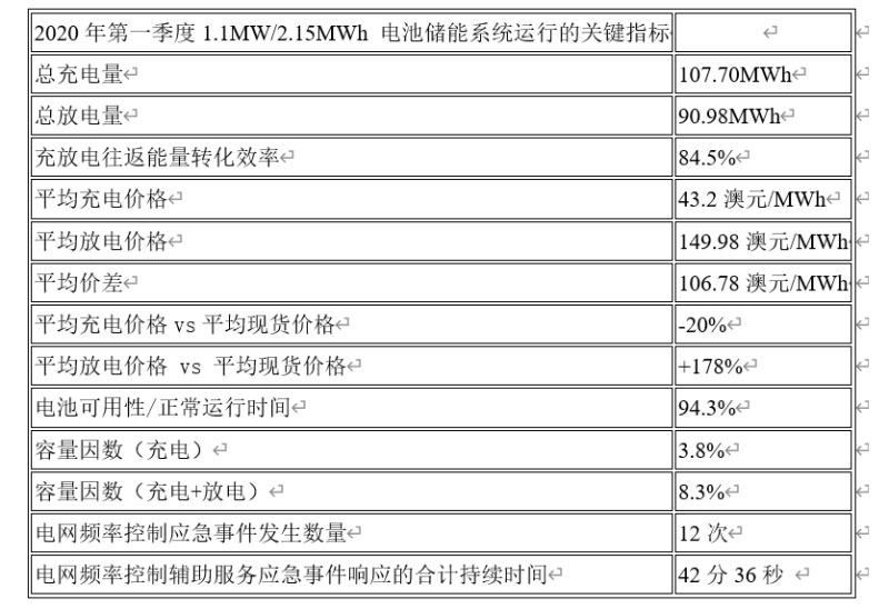 下表提供了這個用戶側(cè)儲能系統(tǒng)的關(guān)鍵性能指標。需要注意的是,儲能系統(tǒng)的充放電往返能量轉(zhuǎn)化效率為84.5%,雖然在正常條件下略低于制造商規(guī)定的86.5%,但其中包括輔助負載,并且受到電池容量有所減少和影響。此外,澳大利亞的第一季度是一年中最熱的幾個月,因此輔助的冷負荷要求最高,耗費更多的電力。
