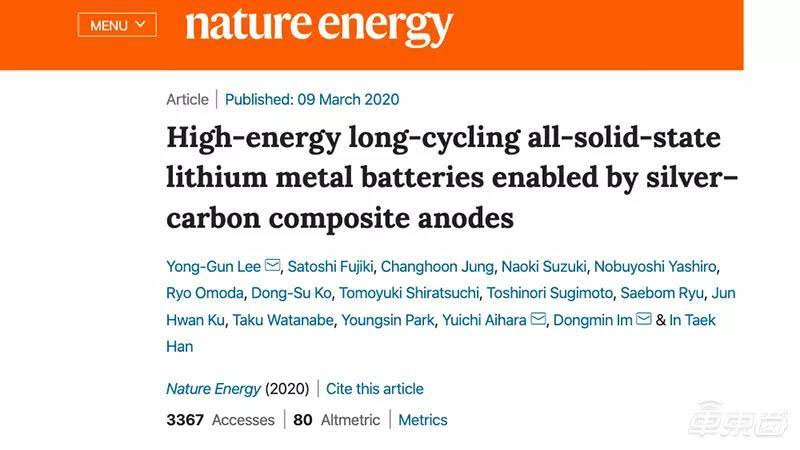 ▲三星在《自然-能源》雜志上發(fā)表論文