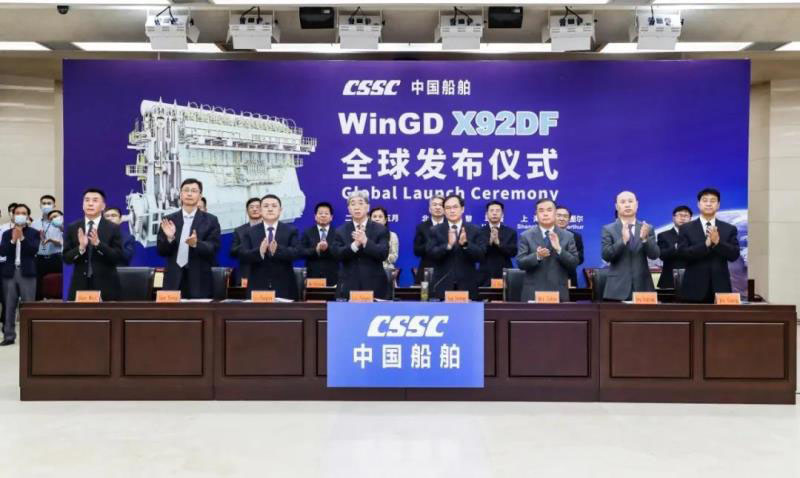 5月26日,由中國(guó)船舶旗下溫特圖爾發(fā)動(dòng)機(jī)有限公司(WinGD)自主研發(fā),上海中船三井造船柴油機(jī)有限公司建造,中船海洋動(dòng)力技術(shù)服務(wù)有限公司保障的目前世界最大船用雙燃料低速機(jī)WinGD X92DF正式向全球發(fā)布。中國(guó)船舶集團(tuán)董事長(zhǎng)雷凡培出席發(fā)布儀式并講話,總經(jīng)理?xiàng)罱鸪芍鞒謨x式。國(guó)家相關(guān)部委、地方政府、船級(jí)社、航運(yùn)公司、造船公司等有關(guān)領(lǐng)導(dǎo)和專家,中國(guó)船舶集團(tuán)副總經(jīng)理馮永強(qiáng)、孫偉、杜剛出席發(fā)布儀式。