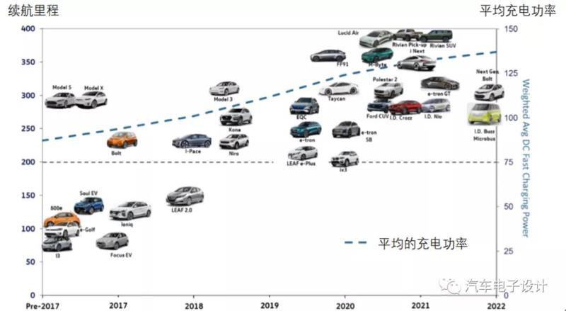 圖1 電動(dòng)汽車平均的快充功率的升級(jí)