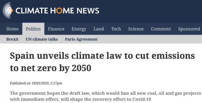 西班牙政府于本周向議會提交法律草案,計劃在2050年前實現(xiàn)零碳碳排放。根據(jù)這項法律草案,西班牙政府承諾在本世紀(jì)中葉前使西班牙電力系統(tǒng)實現(xiàn)100%可再生能源,立即禁止所有新的煤炭、石油和天然氣開采項目,終止化石燃料直接補(bǔ)貼,并在2040年前使所有新的車輛無排放。