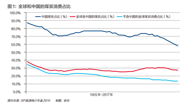 因?yàn)椤案幻贺氂蜕贇狻钡馁Y源稟賦,中國能源消費(fèi)長期以煤為主。2014年習(xí)近平總書記倡導(dǎo)能源革命以來,逐步減少對(duì)煤炭的依賴提上議事日程,特別是打贏藍(lán)天保衛(wèi)戰(zhàn)的大氣污染聯(lián)防聯(lián)控行動(dòng),黨中央、國務(wù)院提出了調(diào)整能源結(jié)構(gòu)、減少煤炭消費(fèi)、增加清潔能源供應(yīng)工作部署,中國煤炭在一次能源消費(fèi)量的占比從2010年70%左右下降到2019年的57.7%,煤電在全社會(huì)發(fā)電量的占比也由2010年的78%,下降到2019年62%。更令人興奮的是,“十三五”(2016-2020)前四年,煤炭消費(fèi)實(shí)現(xiàn)了零增長。