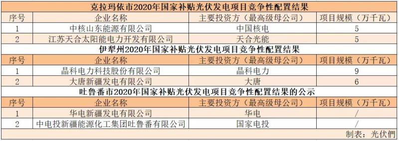 近日,新疆克拉瑪依市、伊犁州、吐魯番市公示了2020年國家補貼光伏發(fā)電項目競爭性配置結(jié)果。中國核電、天合、晶科電力、大唐、華電、國家電投所屬的的項目入圍。