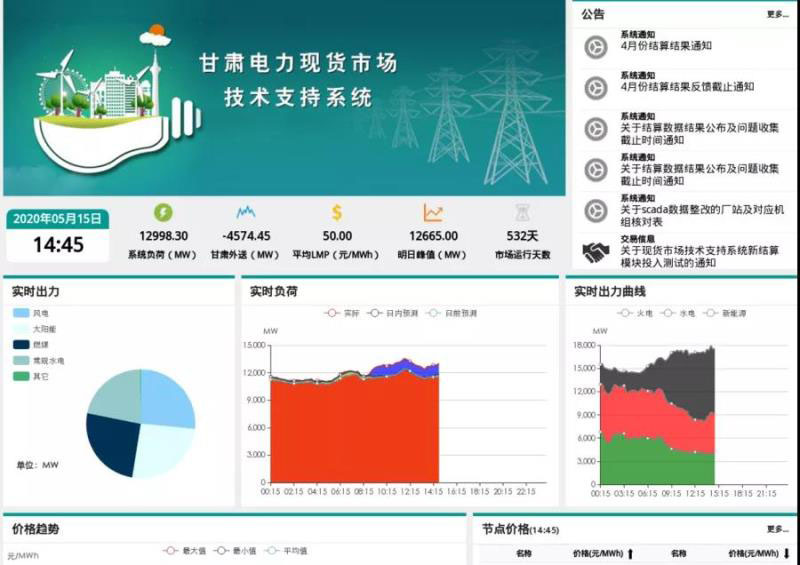 甘肅電力現(xiàn)貨市場技術(shù)支持系統(tǒng)用戶界面