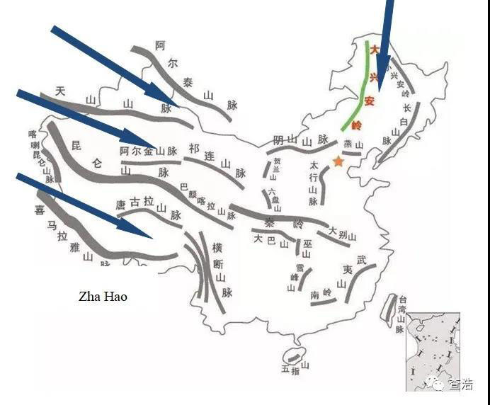 從上圖中,可以看出隨著空間范圍的擴大,風電的波動性會減小,空間范圍越大、風電的整體波動性會越小,說明風能資源具有一定的空間互補性和平滑效果。其實理解這個特性,通過下面一張圖(中國山脈分布圖)也可以有個大體判斷。
