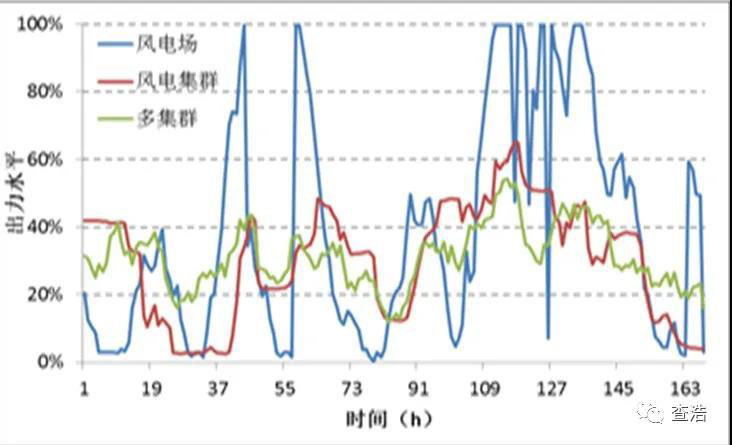 前述初步分析了單個新能源場站隨機波動大,但地理分布的多個新能源場站組成的風電集群會降低出力波動性,而多個風電集群的出力波動會進一步降低。