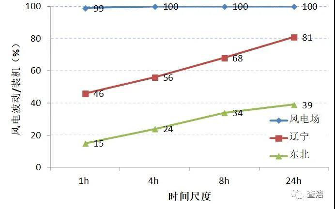 通過上圖可見,單座風電場在一天中的不同時間尺度,波動會很大,1小時內出力會從0到滿發(fā),但一省所有風電出力波動性會相應減小,多省風電出力疊加后的整體波動會進一步降低。