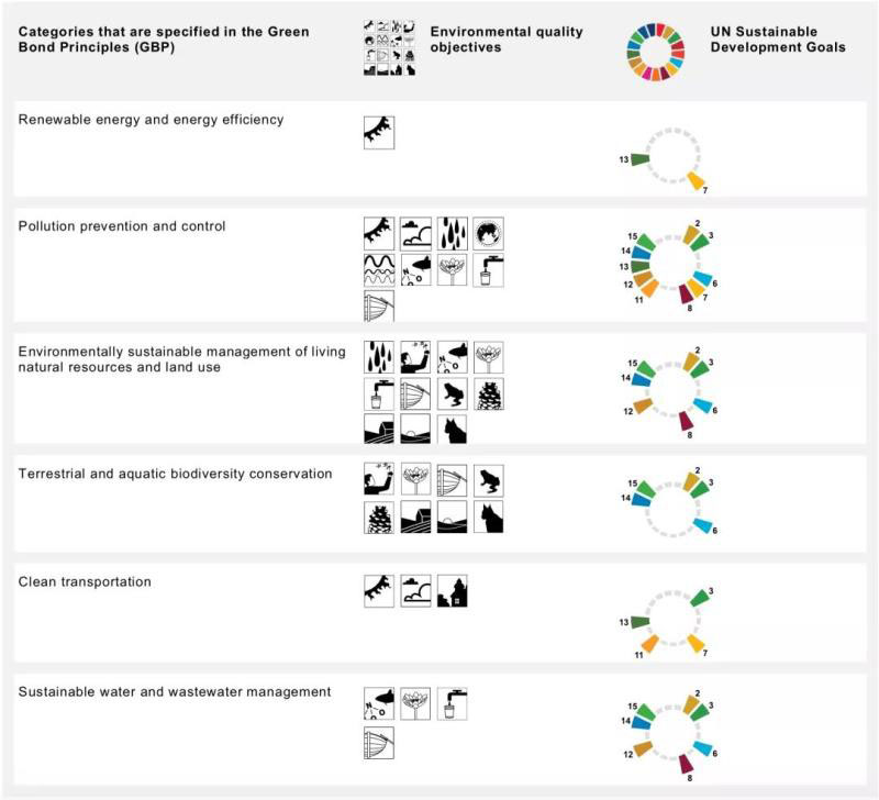 根據(jù)這一框架,債券籌集資金可用于 “合格的綠色支出”,包括旨在減緩氣候變化、加強(qiáng)生物多樣性、促進(jìn)可再生能源項(xiàng)目或減少運(yùn)輸部門(mén)碳排放的支出。綠色債券不能用于與核能、化石能源、大規(guī)模水電(10兆瓦以上)相關(guān)的投資。具體來(lái)說(shuō),瑞典綠色債券可用于支持以下項(xiàng)目: