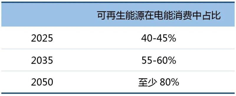 德國聯(lián)邦政府為可再生能源的推行制定了非常高的目標(biāo)。聯(lián)邦政府計(jì)劃到2025年可再生能源在電能消費(fèi)的百分比將達(dá)到40%至45%,2035年達(dá)到55%至60%;到本世紀(jì)中葉,可再生能源占比將達(dá)到至少80%。此外德國聯(lián)邦政府計(jì)劃可再生能源消費(fèi)量占一次能源消費(fèi)總量的比例從2010年的10%提高至2050年的60%。