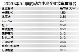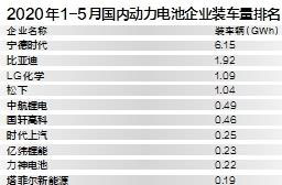 日前,中國(guó)汽車(chē)動(dòng)力電池產(chǎn)業(yè)創(chuàng)新聯(lián)盟發(fā)布了5月份動(dòng)力電池報(bào)告。在動(dòng)力電池企業(yè)裝車(chē)量方面,寧德時(shí)代、比亞迪、LG化學(xué)分別以1.59GWh、0.39GWh和0.37GWh占據(jù)前三。配套特斯拉國(guó)產(chǎn)車(chē)型的LG化學(xué)在5月超越了松下升至第三位,后者裝車(chē)量為0.28GWh。