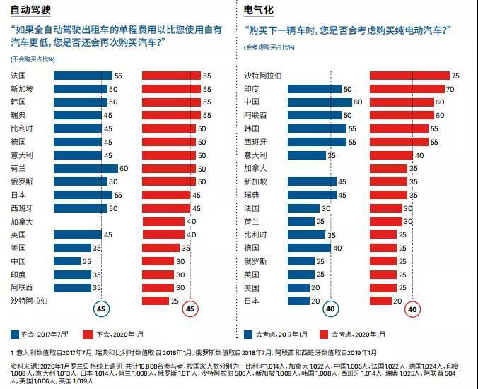 第六期《汽車行業(yè)顛覆性數(shù)據(jù)探測》報(bào)告發(fā)現(xiàn),盡管汽車行業(yè)整體低迷,但消費(fèi)者對電動汽車和自動駕駛汽車的興趣仍在增加。第七期報(bào)告發(fā)現(xiàn),該興趣在全球范圍內(nèi)持續(xù)維持在較高水平,其中55%的受訪者接受使用自動駕駛出租車服務(wù),而40%的消費(fèi)者考慮購買電動車作為下一輛車。