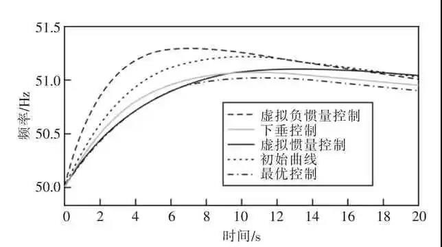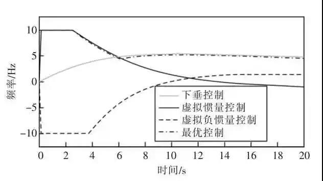 (2)在頻率接近最大頻率偏差、頻率變化較小時(shí),應(yīng)該采用下垂控制提供更多等效轉(zhuǎn)動(dòng)慣量。