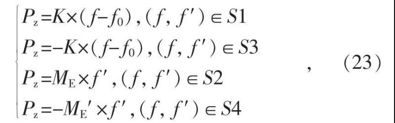 式中:Pz 為儲(chǔ)能系統(tǒng)最優(yōu)控制方法有功功率控制輸出,Pz >0 儲(chǔ)能發(fā)出功率,Pz<0 儲(chǔ)能吸收功率,其他情況時(shí)儲(chǔ)能與系統(tǒng)交換功率為零。S1,S2,S3,S4 為頻率變化的不同階段。具體計(jì)算方法為: