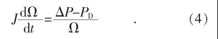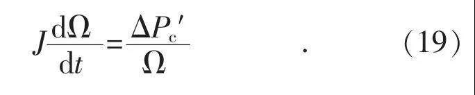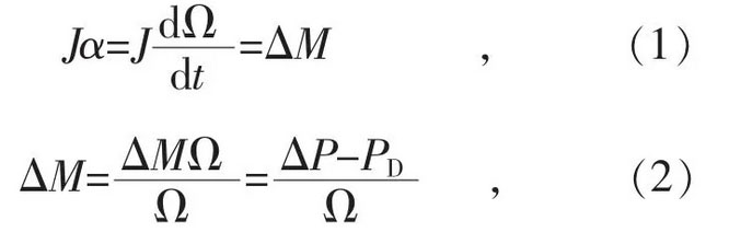 式中:J 為轉(zhuǎn)子的轉(zhuǎn)動(dòng)慣量;Ω 為轉(zhuǎn)子機(jī)械角速度;α 為機(jī)械角加速度;ΔM 為作用在轉(zhuǎn)子軸上的不平衡轉(zhuǎn)矩;ΔP 為不平衡功率;PD 為阻尼功率。