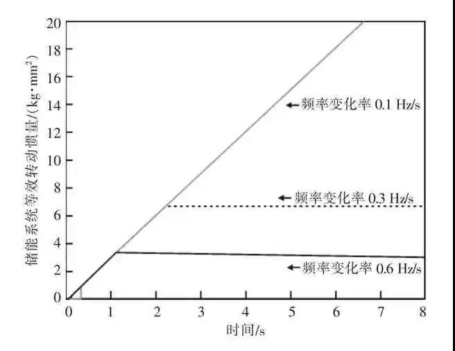 根據(jù)式(16),儲(chǔ)能系統(tǒng)提供最大功率后,在頻率變化率不變的情況下,儲(chǔ)能系統(tǒng)提供的轉(zhuǎn)動(dòng)慣量和系統(tǒng)頻率變化率相關(guān),系統(tǒng)頻率變化率越小,儲(chǔ)能系統(tǒng)能夠提供更大的轉(zhuǎn)動(dòng)慣量。