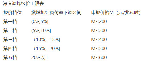 第18 參與深度調(diào)峰市場報價的燃煤機組在有償調(diào)峰基準(zhǔn)的基礎(chǔ)上,采用下調(diào)容量比率形式分檔報價。機組以5%容量作為一個報價檔位,由第一檔至第五檔按照價格遞增的原則逐段申報。機組可達到的最大下調(diào)能力須與報價信息同時申報。市場初期,對每檔申報價格設(shè)置價格上限,并根據(jù)市場運行情況,必要時設(shè)置價格下限。