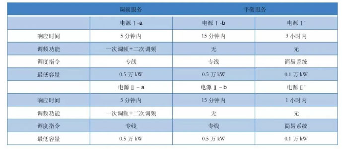 機(jī)組啟停調(diào)節(jié)外的是三次調(diào)節(jié)服務(wù)產(chǎn)品。三次調(diào)節(jié)包括:接受經(jīng)濟(jì)調(diào)度控制EDC指令,要求晌應(yīng)時(shí)間在15分鐘以內(nèi),持續(xù)時(shí)間3小時(shí),具體根據(jù)發(fā)電機(jī)調(diào)整能力和調(diào)節(jié)所需量而定;為解決可再生能源不可控和不確定性帶來的系統(tǒng)可靠性問題,針對(duì)可再生能源預(yù)測(cè)偏差特別設(shè)計(jì)了三次調(diào)節(jié)服務(wù)產(chǎn)品,要求響應(yīng)時(shí)間45分鐘以內(nèi),持續(xù)時(shí)間3個(gè)小時(shí)。