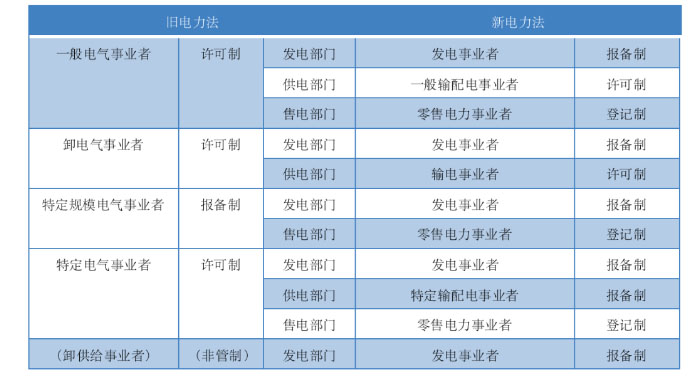 表1 日本電力企業(yè)分類制度