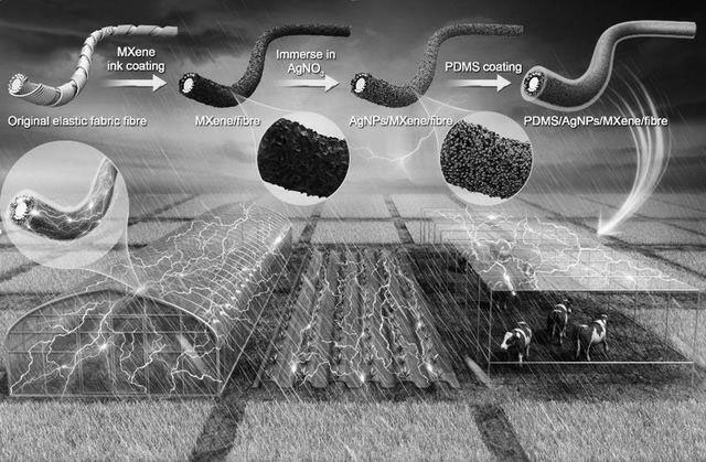 如何從農(nóng)業(yè)環(huán)境中挖掘能源?研究團(tuán)隊(duì)通過(guò)紗線表面功能化,將摩擦納米發(fā)電機(jī)依附在紗線上,織成智能化農(nóng)用紡織品,利用雨水沖刷時(shí)的電子轉(zhuǎn)移與流動(dòng)產(chǎn)生電流,從而源源不斷地為智慧農(nóng)業(yè)供能。
