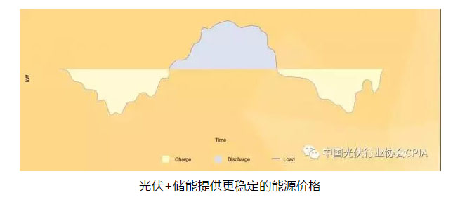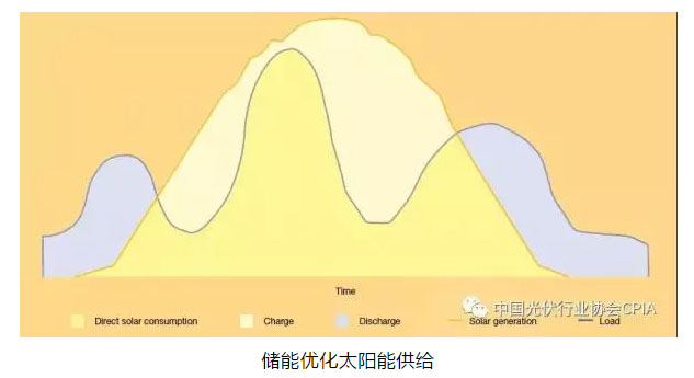 太陽能供給曲線(黃色)是變量,與傳統(tǒng)電力需求曲線(藍(lán)色)僅部分保持一致,將光伏+儲(chǔ)能相結(jié)合可以儲(chǔ)存多余電量(白色區(qū)域),當(dāng)用戶需求過高時(shí)(藍(lán)色區(qū)域),可以將儲(chǔ)存的太陽能電量運(yùn)送回輸電網(wǎng),最大限度的利用儲(chǔ)能的技術(shù)潛力。