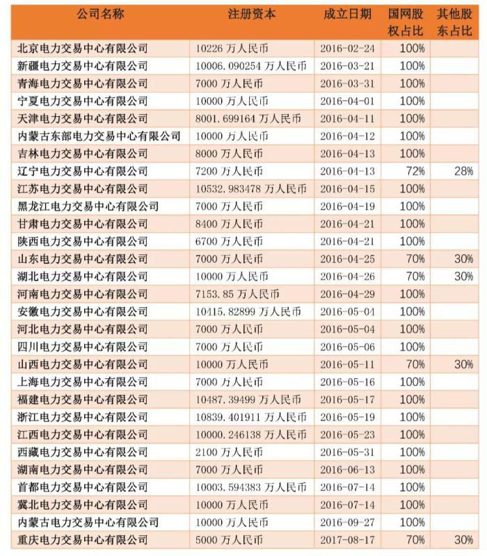 在新一輪電改開始之后,國網(wǎng)和南網(wǎng)相繼成立了三十余家電力交易中心,并且股權(quán)結(jié)構(gòu)主要是電網(wǎng)控股,甚至是100%控股。