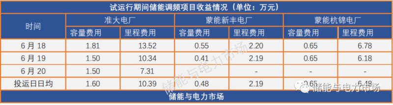 截至試運(yùn)行日,蒙西電網(wǎng)中,對外宣布已投運(yùn)的儲(chǔ)能聯(lián)合火電調(diào)頻項(xiàng)目有三個(gè):準(zhǔn)大電廠、蒙能新豐電廠、蒙能杭錦電廠,這三個(gè)項(xiàng)目的試運(yùn)行情況如下表。