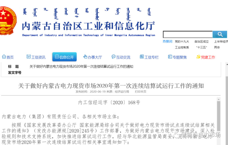 6月19日,內(nèi)蒙古工信廳發(fā)布了《關(guān)于做好內(nèi)蒙古電力現(xiàn)貨市場2020年第一次連續(xù)結(jié)算試運(yùn)行工作的通知》,計(jì)劃: