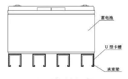 在電池抗震鐵架每層鐵架構(gòu)件(承重梁)與電池殼體接觸部分上襯以塑料絕緣護套,將金屬承重梁全包裹,如圖2所示,其作用就是將電池與金屬電池架之間隔開,防止漏下的腐蝕性液體將電池與架間導通,發(fā)生電氣短路。絕緣護套也可以叫做U型卡槽或承重梁護套,一般設(shè)計成U形卡在電池承重梁上。材質(zhì)選阻燃PVC、ABS或PP等塑料材質(zhì),光滑、耐磨、抗壓力好,安裝方便。且不影響電池上下層通風散熱。缺點是不能承接液體,液體量大會流到下層電池上產(chǎn)生腐蝕。絕緣護套需要根據(jù)承重梁形狀專門定制開塑料模具。