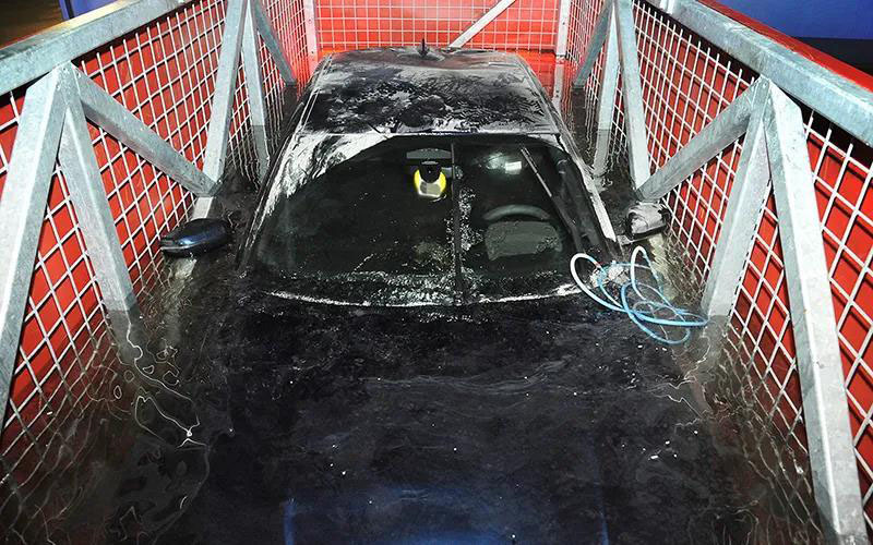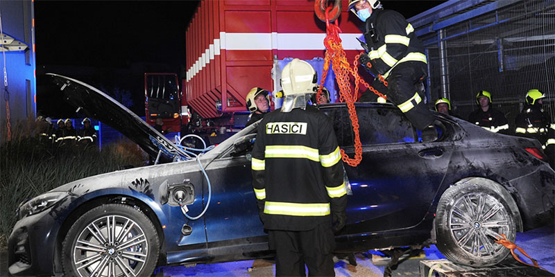 為了保證起火車輛的安全,捷克消防部門還特意調(diào)集了一輛水車、一個(gè)箱式車輛(用于放置車輛和水)和一臺(tái)起重機(jī),將移至開闊區(qū)域的車輛,用起重機(jī)放入箱式車輛中,最后用水完全浸泡起火車輛,進(jìn)一步冷卻和減小再次起火概率。