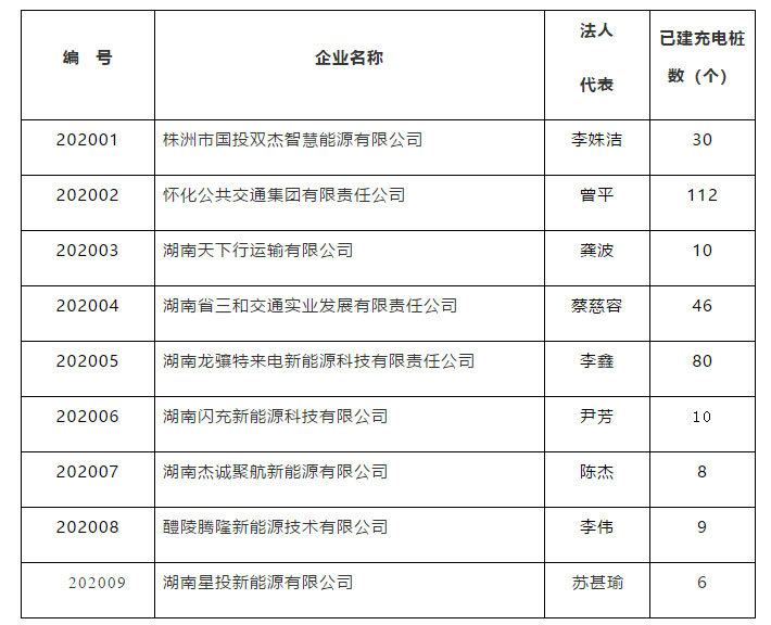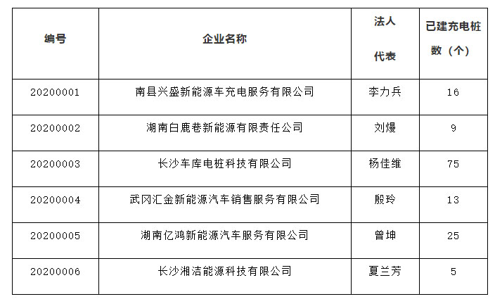 此前,湖南省發(fā)改委還公示了2020年第一批(9家)和第二批(6家)電動汽車充電設(shè)施運營企業(yè)。