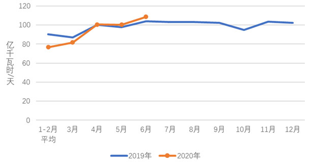 6月份,化工行業(yè)用電量382億千瓦時(shí),同比增長1.8%,增速比上年同期提高1.0個(gè)百分點(diǎn);建材行業(yè)用電量370億千瓦時(shí),同比增長8.0%,增速比上年同期提高1.1個(gè)百分點(diǎn);黑色金屬冶煉行業(yè)用電量523億千瓦時(shí),同比增長4.0%,增速比上年同期回落8.5個(gè)百分點(diǎn);有色金屬冶煉行業(yè)515億千瓦時(shí),同比增長2.6%,增速比上年同期提高1.4個(gè)百分點(diǎn)。