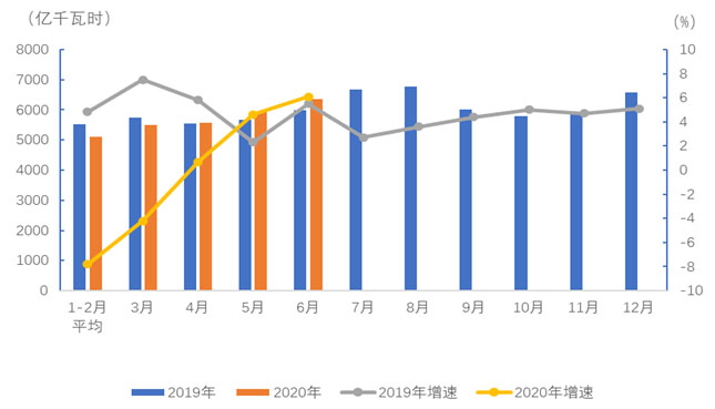 1-6月,全國全社會(huì)用電量33547億千瓦時(shí),同比下降1.3%,其中,6月份全國全社會(huì)用電量6350億千瓦時(shí),同比增長6.1%。