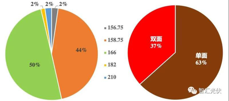五家央企近期17.5GW的組件招標(biāo)需求構(gòu)成顯示:大硅片已經(jīng)成為絕對(duì)主流,雙面組件的占比增速超預(yù)期,具體如下圖所示。