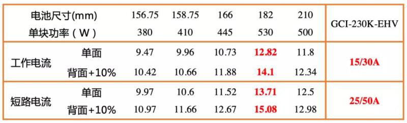 針對(duì)大功率、雙面組件這一趨勢,GCI-230K-EHV對(duì)軟硬件進(jìn)行升級(jí)和改進(jìn),每串工作電流、短路電流最高可達(dá)15A和25A,完美適配大功率、雙面組件。