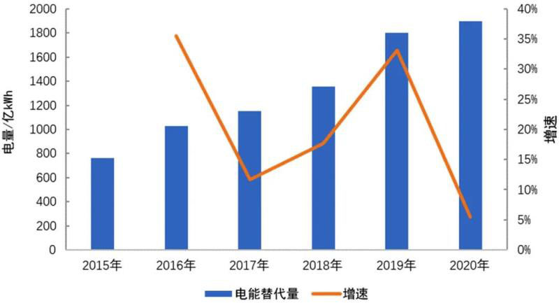 實(shí)施電能替代戰(zhàn)略可以提高全社會(huì)電氣化水平,提升居民生活水平和社會(huì)生產(chǎn)效率,緩解環(huán)境污染,保障我國(guó)能源安全。近年來,電能替代技術(shù)在多領(lǐng)域推廣應(yīng)用,替代規(guī)模不斷擴(kuò)大,替代電量以工農(nóng)業(yè)生產(chǎn)制造領(lǐng)域?yàn)橹鲗?dǎo),電力供應(yīng)與消費(fèi)領(lǐng)域、交通運(yùn)輸領(lǐng)域、居民采暖領(lǐng)域及家庭電氣化領(lǐng)域協(xié)同發(fā)展。但實(shí)施過程中,依然存在經(jīng)濟(jì)性弱等制約因素,未來拓展電能替代廣度深度的難度加大。預(yù)計(jì)“十四五”期間電能替代依然保持較大規(guī)模,是拉動(dòng)用電增長(zhǎng)的重要力量。
