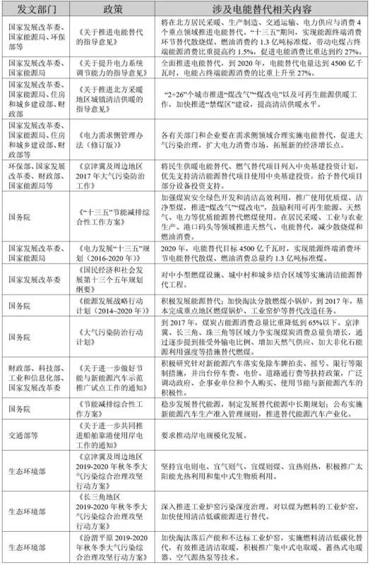 表1 近年來國(guó)家層面電能替代相關(guān)政策